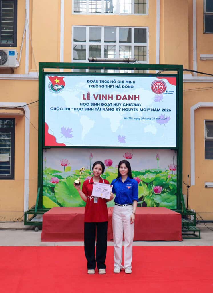 Cúp Vô Địch Cuộc thi học sinh tài năng kỷ nguyên mới năm 2026 đã thuộc về Học sinh trường THPT Hà Đông Đăng vào 31/03/2026 bởi Kim Thuỳ Hương Xem thêm: Hướng dẫn chuyển trường đợt đầu học kì 2 năm học 2023-2024 Đại hội Chi bộ Trường THPT Hà Đông nhiệm kỳ 2025 – 2027 Quyết định công khai trong hoạt động của trường THPT Hà Đông năm học 2025 – 2026 TUYỂN BỔ SUNG 5 LỚP 10 TRƯỜNG THPT HÀ ĐÔNG Tuyển sinh bổ sung 5 lớp 10 năm học 2025 – 2026 Bài viết cùng chủ đề: Chúc mừng 495 học sinh Trường THPT Hà Đông đã rất xuất sắc được tuyển thẳng vào Học viện Công nghệ Bưu chính Viễn thông chính quy năm 2026! Nam sinh lớp 11 trúng tuyển ngành y của 6 đại học hàng đầu Canada Thông tin tuyển sinh lớp 10 năm 2026 Trường THPT Hà Đông chuẩn không cần chỉnh! Trường THPT Hà Đông: Trao cơ hội – Khơi tiềm năng – Chắp cánh tương lai cho từng học sinh. GẶP MẶT TRI ÂN KỶ NIỆM NGÀY NHÀ GIÁO VIỆT NAM 20/11 ĐẠI HỘI ĐOÀN TRƯỜNG THPT HÀ ĐÔNG NHIỆM KỲ 2025 – 2026! Thông báo tuyển giáo viên Liên hoan văn nghệ Tổng kết học kỳ Quân đội 2025 Lễ khai giảng năm học 2025 – 2026 Đoàn viên thanh niên Trường THPT Hà Đông vinh dự và tự hào tham gia Lễ diễu binh, diễu hành ngày Quốc khánh 2/9.Đảng Cộng sản Việt Nam quang vinh, muôn năm! Trường THPT Hà Đông: Đi trước đón đầu trong đổi mới giáo dục Tự hào “Tôi là người Việt Nam”! 900 Học sinh tham gia trải nghiệm huấn luyện quân sự năm 2025 Đoàn viên thanh niên Trường THPT Hà Đông vinh dự và tự hào tham gia Lễ diễu binh, diễu hành ngày Quốc khánh 2/9. Đảng Cộng sản Việt Nam quang vinh, muôn năm! Tuyển bổ sung 30 chỉ tiêu vào lớp 10 Trường THPT Hà Đông Chúc mừng 495 học sinh Trường THPT Hà Đông đã rất xuất sắc được tuyển thẳng vào Học viện Công nghệ Bưu chính Viễn thông chính quy năm 2026!