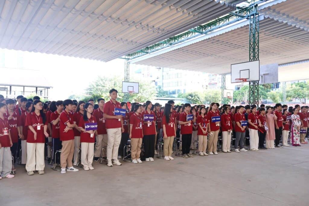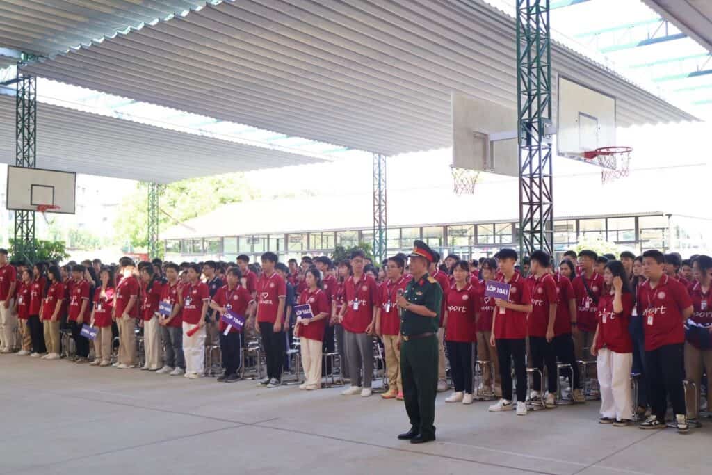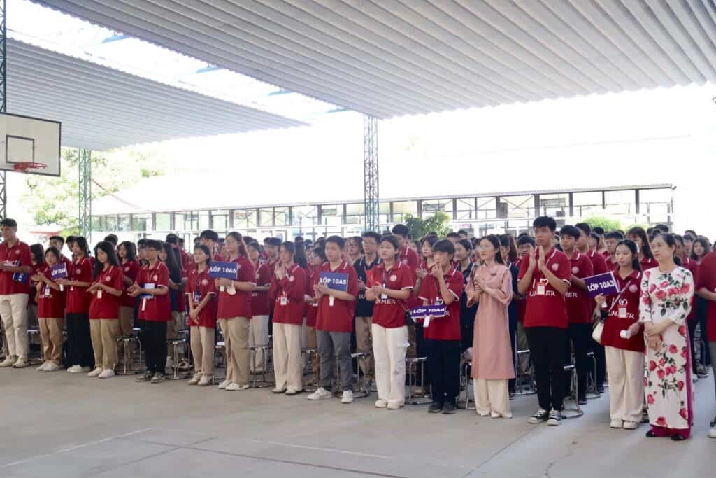 Trong Lễ Khai giảng, nhà trường chào đón các em học sinh lớp 10 và khen thưởng học sinh đã tham gia Lễ diễu binh, diễu hành kỷ niệm 80 năm Quốc khánh 2/9 tại Quảng trường Ba Đình lịc sử. Dưới đây là một số hình ảnh của buổi lễ: