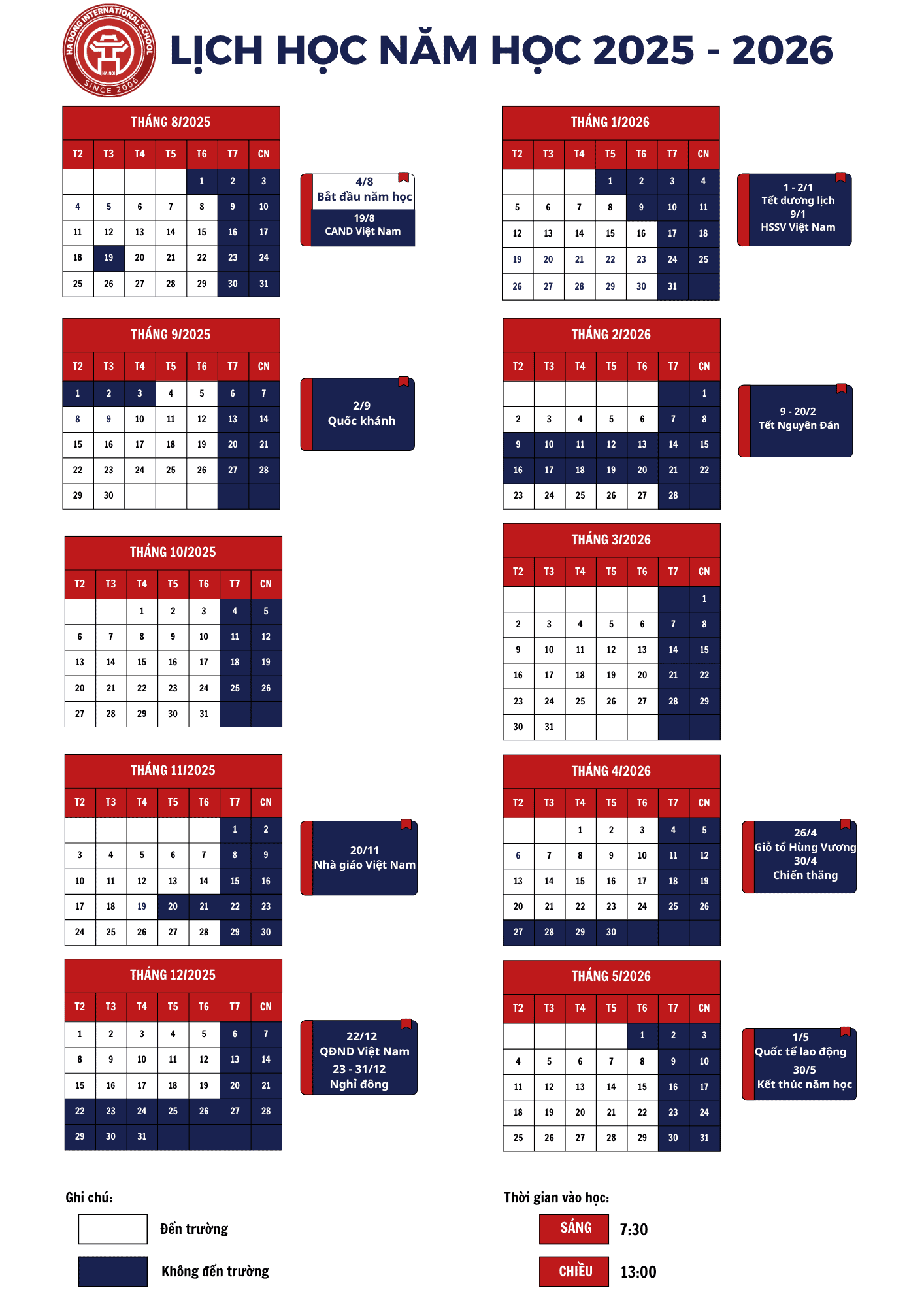Lịch học năm học 2025 – 2026