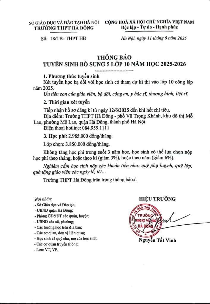 THPT Hà Đông bổ sung 225 chỉ tiêu, xin chúc mừng các em 2k10!